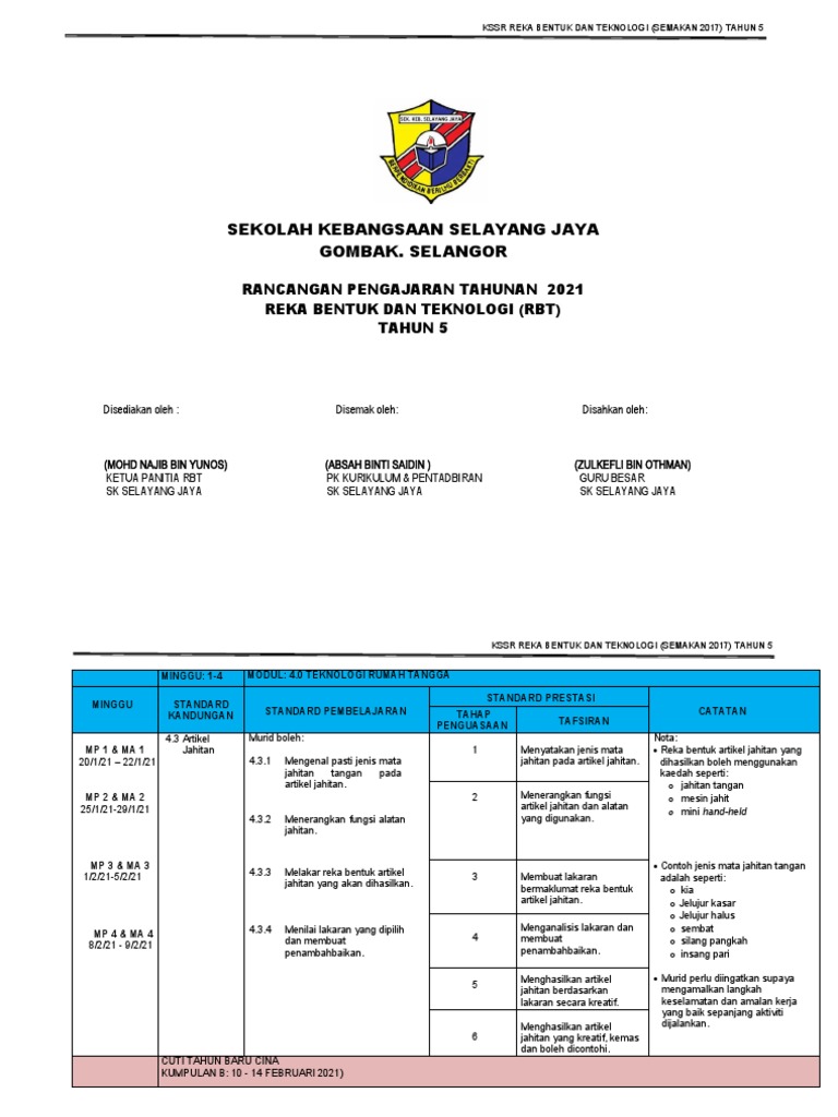 Berikut merupakan RPT 2019 Reka Bentuk Teknologi Tahun 5 KSSR. RPT RBT Tahun 4 2019. RPT TMK Tahun 5.